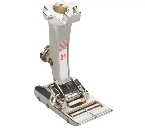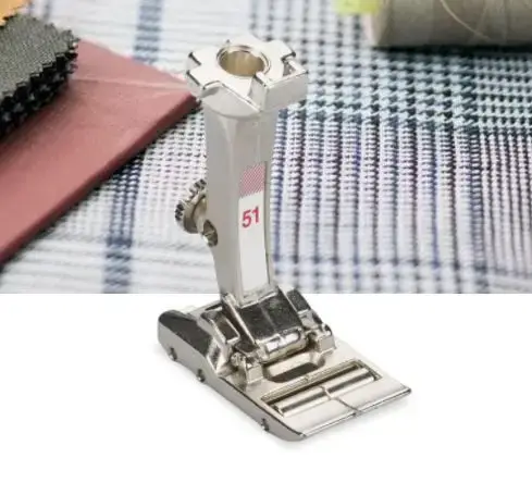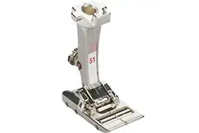 The Roller Foot #51 is an expert tool designed for sewing on challenging materials. Featuring three rollers on its sole, this foot glides effortlessly over “sticky” textiles like leather and vinyl, as well as fabrics with rough textures. The roller mechanism ensures smooth fabric feed, resulting in neat and even stitch patterns. This makes Roller Foot #51 perfect for decorative topstitching on leather, as well as for constructing and repairing bags, raincoats, and various garments or home furnishings. Whether you’re tackling a DIY project or making repairs, this foot offers the versatility and performance you need for high-quality results.