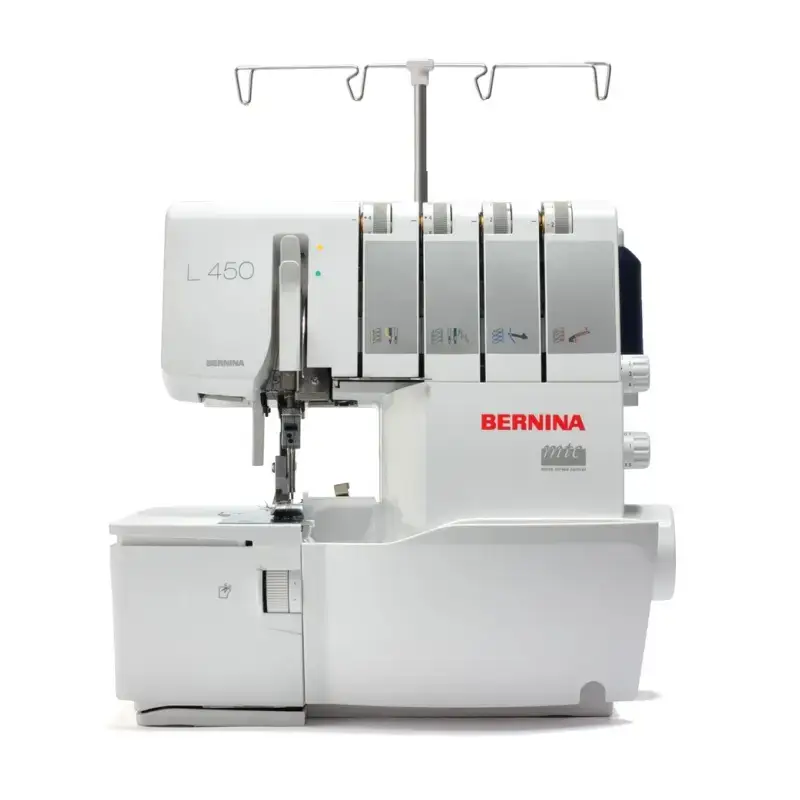 The BERNINA L 450 offers a multitude of benefits, including the ability to sew, cut, and finish seams in one swift operation, ensuring efficiency and precision. Its user-friendly design makes it easy and comfortable to handle, catering to both beginners and seasoned sewers alike. With 2-3-4 thread stitch formations, it provides unparalleled flexibility in selecting the ideal stitch for any project, guaranteeing professional stitch quality every time. Additionally, it excels in rolled hemming and is perfect for working with stretchy and woven fabrics, while its automatic differential feed effortlessly creates ruffles and gathers.