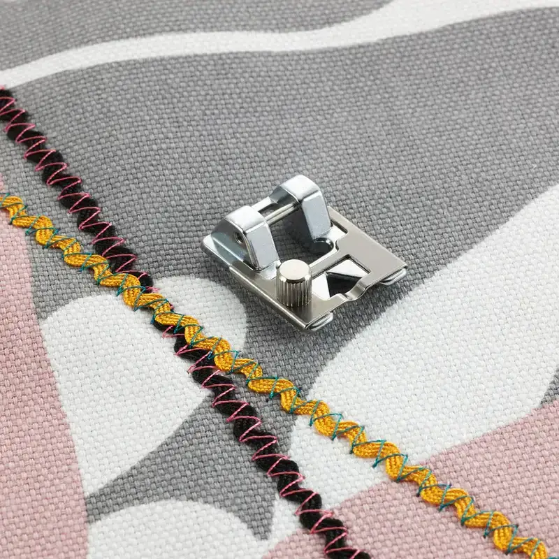 The adjustable guide on this foot ensures perfectly centered, hands-free placement of cords, ribbon, braiding, or tape up to 7mm in width. This feature allows for precise and consistent stitching, making it easy to embellish your projects with various decorative elements.