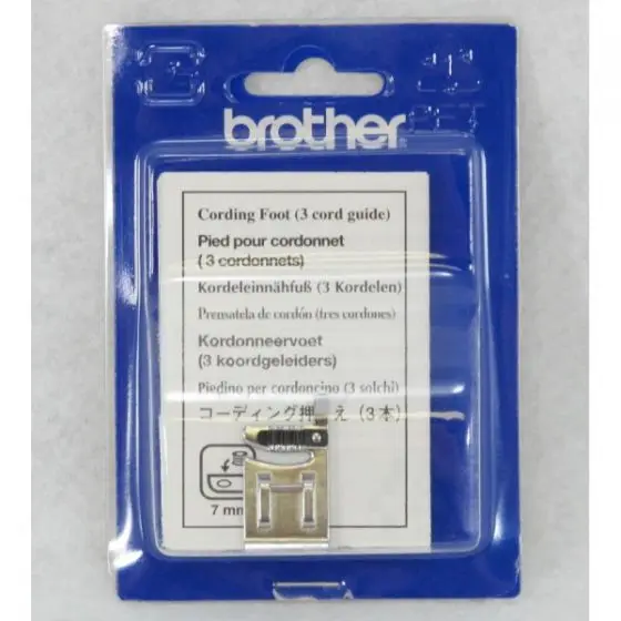 The Genuine Brother Cording Foot is designed for embellishing with 1-3 cords or yarns. The cords are held in place by a clip on the top of the foot, allowing you to easily insert them and stitch them down using a serpentine zigzag or other decorative stitches. It’s perfect for couching techniques and offers similar functionality to the 7mm Cording Foot, making it ideal for adding texture and dimension to your projects.