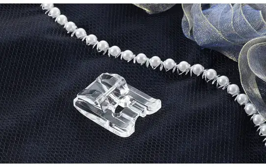 The Brother 7mm Pearls and Sequins Foot is a genuine Brother accessory designed to add a touch of glitz to your projects with sequins, pearls, or larger cords. Simply place your chosen embellishment under the foot and into the guide to stitch it down to the base fabric. The foot features a guide channel that ensures even feeding of pearls and other embellishments. Made of clear plastic, it offers excellent visibility from all angles, allowing you to easily monitor your work while adding beautiful decorative touches to your fabric.
