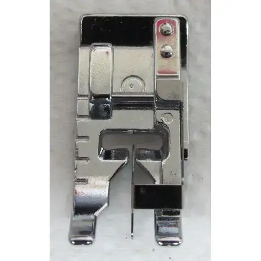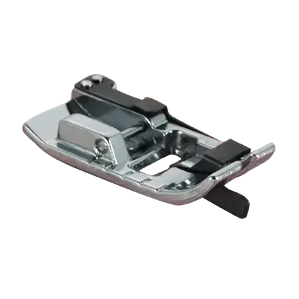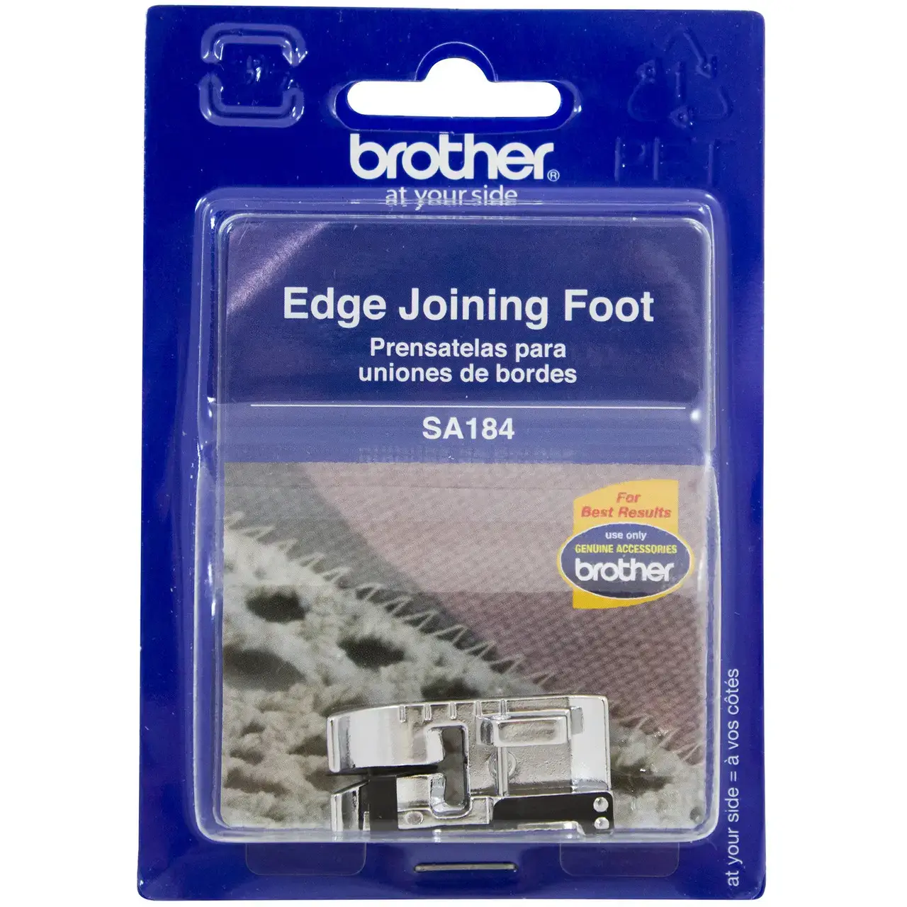 The Brother Edge Joining Foot is a genuine Brother accessory designed for precise and easy joining of fabrics, including sheers and other difficult materials. This foot holds fabrics in place while leaving space for open decorative stitches, such as open weave stitches, to add texture and detail. It features reference marks for increased accuracy and can be used to line up and sew edgings like lace to the edges of other fabrics. The centered blade enhances your ability to follow the fabric edge, ensuring clean, professional results.