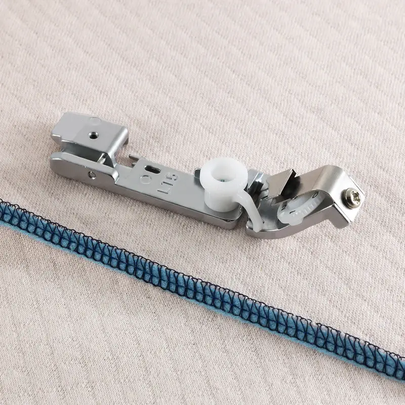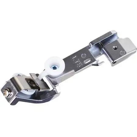The Brother Elastic Foot for Serger is a genuine Brother accessory designed to attach and sew elastic or tape in one easy step with your overlock machine. It features an adjustable stitch width of up to 12mm, providing flexibility for different projects. The foot includes a channel that secures the elastic or twill tape to the fabric, eliminating the need for pins as you create a serged edge. It also gathers knits as the elastic is attached, making it perfect for adding elastic to garments or other projects.