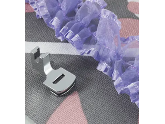 The Gathering Foot is perfect for lightly gathering fabric and simultaneously attaching the gathered edge to a flat (ungathered) piece of fabric, making the process quick and easy. This foot allows you to gently ease or slightly gather fabric, making it ideal for a variety of garment and home décor applications, ensuring a smooth and professional finish every time.