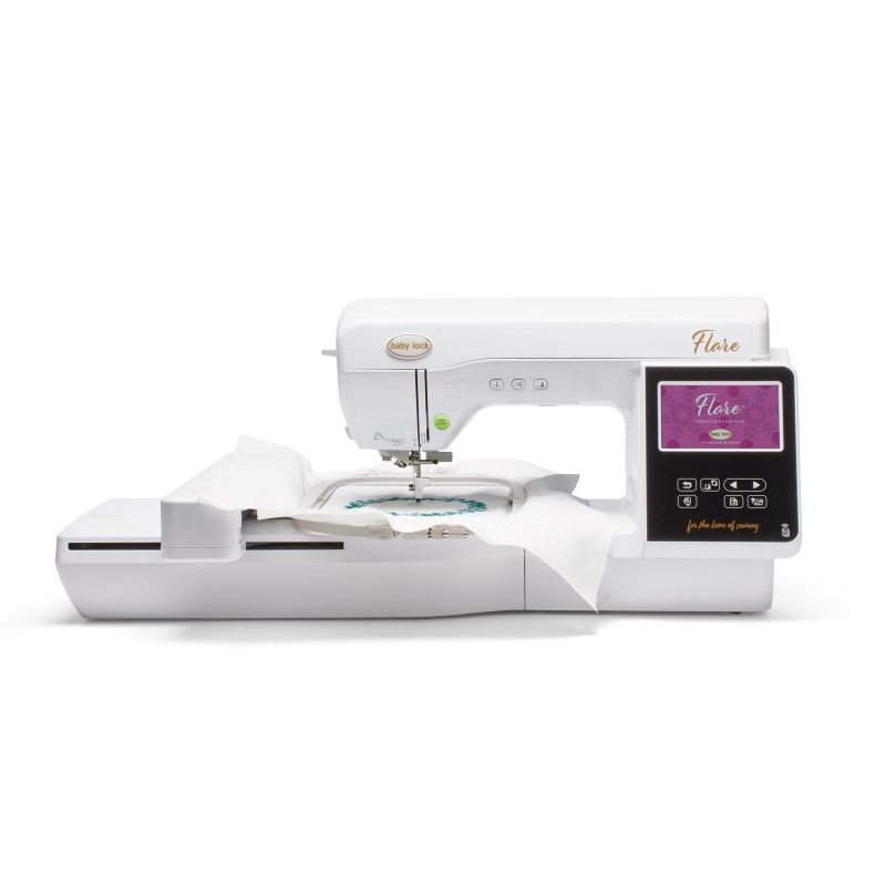 “Looking for the best embroidery machine at an affordable price? The Baby Lock Flare embroidery machine is your dream come true! With an expansive embroidery area of over 6″ x 10″, your creativity knows no bounds. The Baby Lock Flare embroidery machine is powered by advanced IQ Technology, making it super user-friendly for embroiderers at any level.
