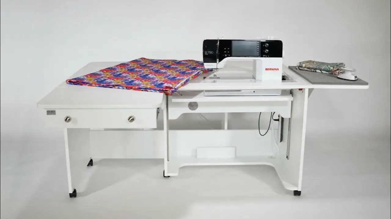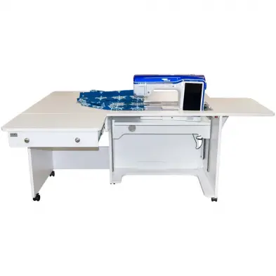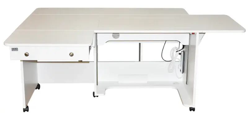- The large drawer extension gives you room to move your project to the left away from the needle while you sew (25-1/8” W x 16” D)