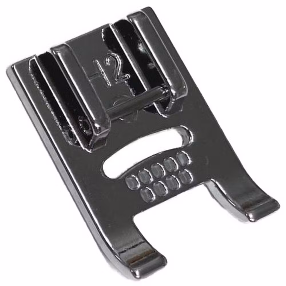 The Janome 9-Hole Cording Foot is perfect for creating bold and decorative designs using multiple strands of cording. This foot allows you to use five or seven strands of cording, enabling you to create wide lines of texture and dimension. For a striking effect, use cording in a single color for a thick, solid line, or experiment with multiple colors for a gradient or rainbow effect. The 9-Hole Cording Foot is compatible with all 9mm machines that accept snap-on presser feet, making it a versatile tool for adding eye-catching embellishments to your projects.
