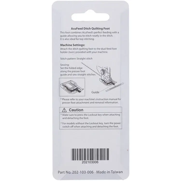 - Presser Foot Type: Ditch Quilting Foot