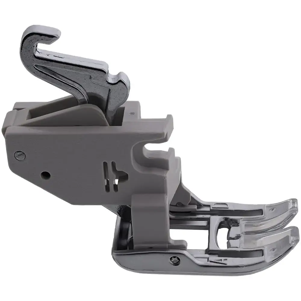 The Janome AcuFeed Dual Feed Foot & Holder 9mm comes standard with all models equipped with the AcuFeed System. This foot is specially designed to engage the AcuFeed system, allowing the top layer of fabric to move in perfect sync with the bottom layer. This ensures smooth, even fabric feeding, making it ideal for quilting, sewing thick layers, or working with challenging fabrics.
