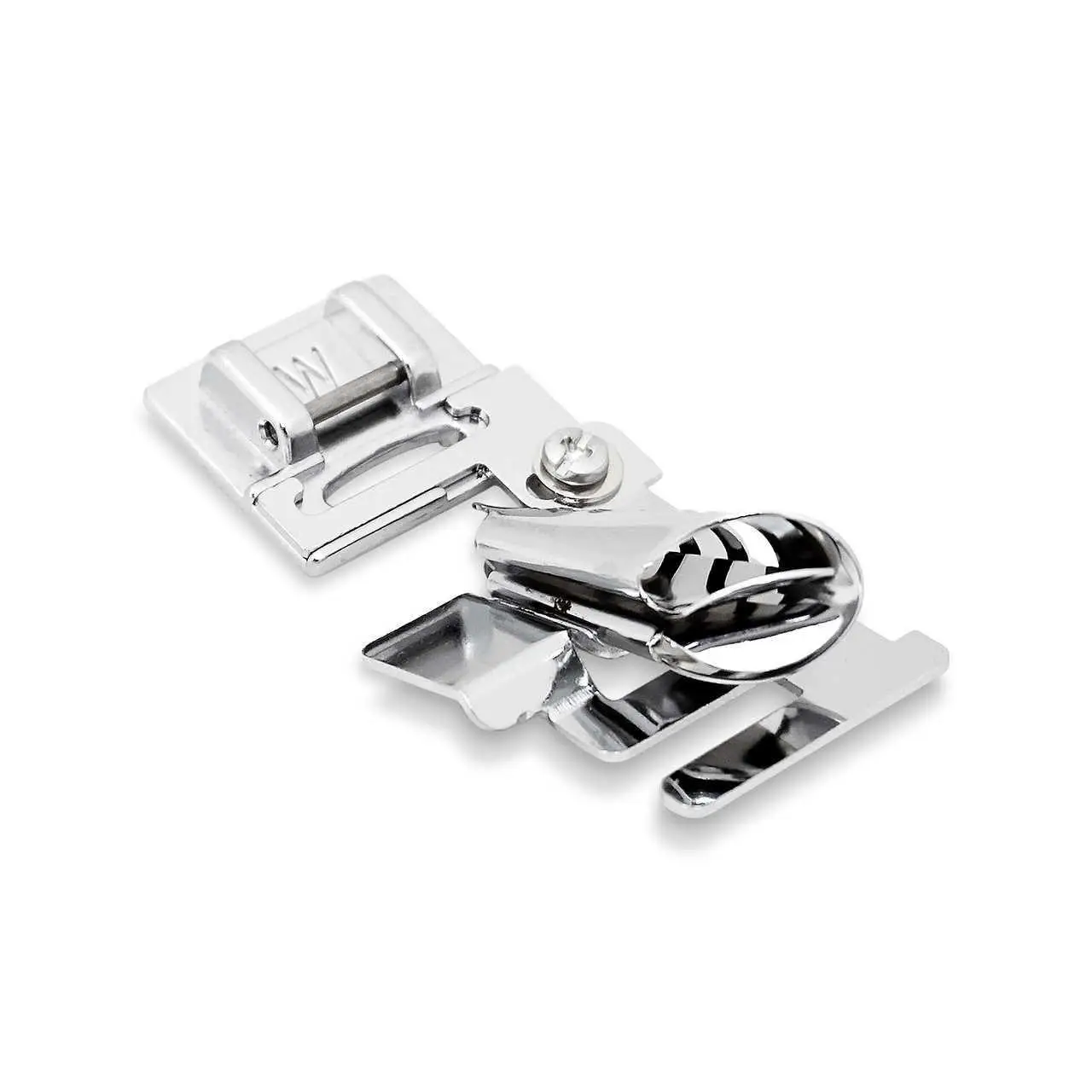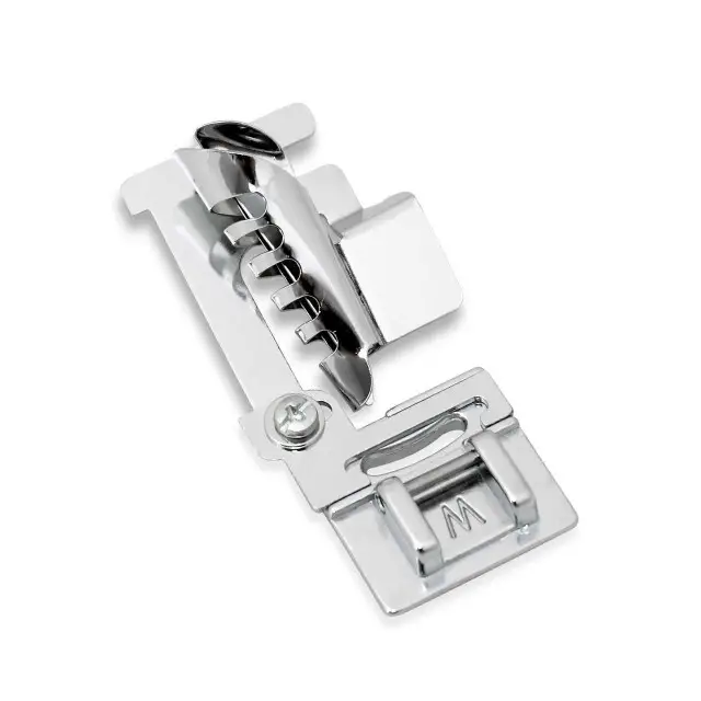 The Janome Binder Foot (9mm) is designed to apply pre-folded or self-made bias binding tape to the edge of fabric in one easy step. It features a small funnel that folds and guides the binding over the fabric edge before it reaches the needle. This foot can be used with straight stitches, zigzag, or decorative stitches, allowing you to customize your stitching and achieve a clean, professional finish. It’s an essential tool for creating neat, finished edges on a variety of sewing projects.
