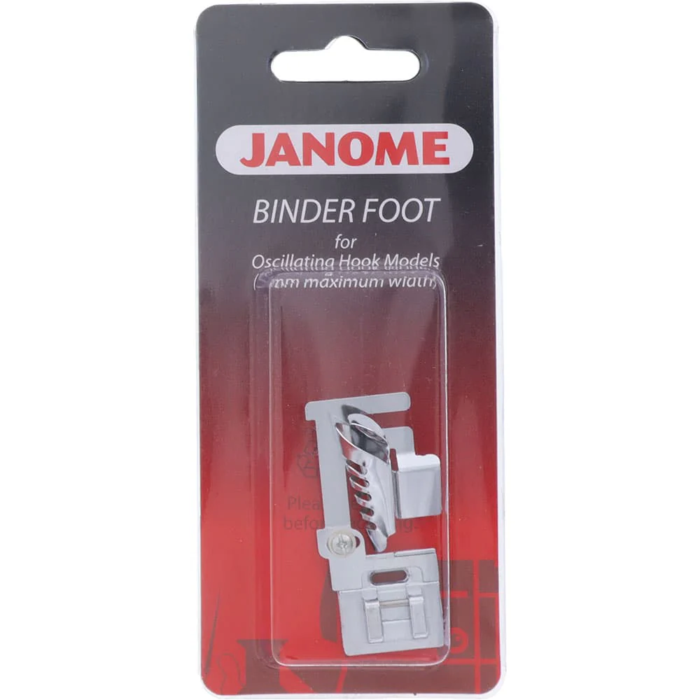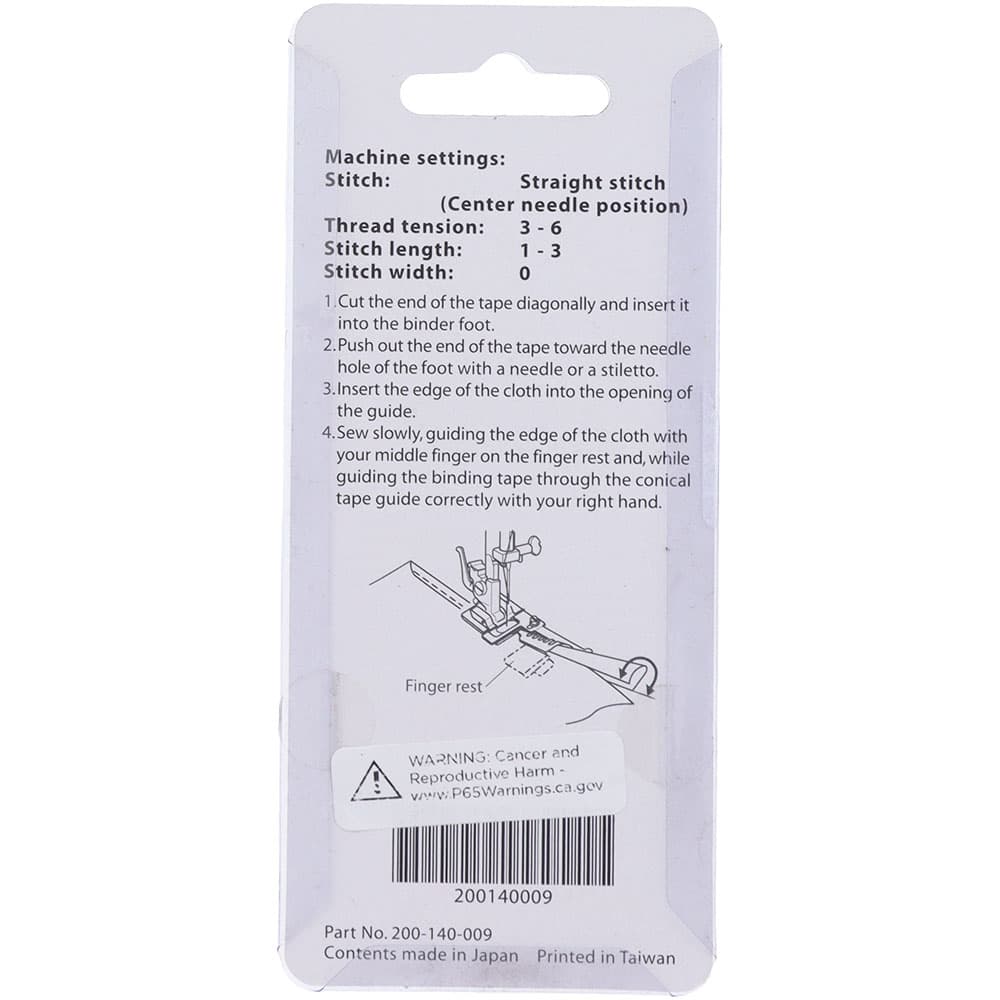 The Janome Binder Foot (Front Loading) makes applying pre-folded or self-made bias binding tape fast and easy. Its built-in funnel folds and guides the binding smoothly over the fabric edge before stitching. Use it with straight, zigzag, or decorative stitches for a clean, professional finish.