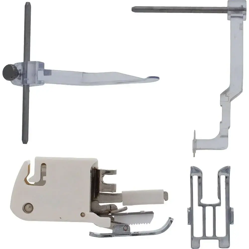 The Janome Convertible Even Feed Foot Set (HS 7mm) is designed with quilters in mind. It includes a Closed Toe Even Feed Foot, an Open Toe Foot for better visibility, a Ditch Quilting Guide, and an Adjustable Quilting Guide. This versatile set makes it easy to handle a wide range of quilting techniques, giving you smooth, even stitching through multiple layers with less hassle.