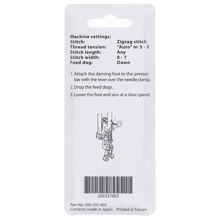 - Presser Foot Type: Darning Foot