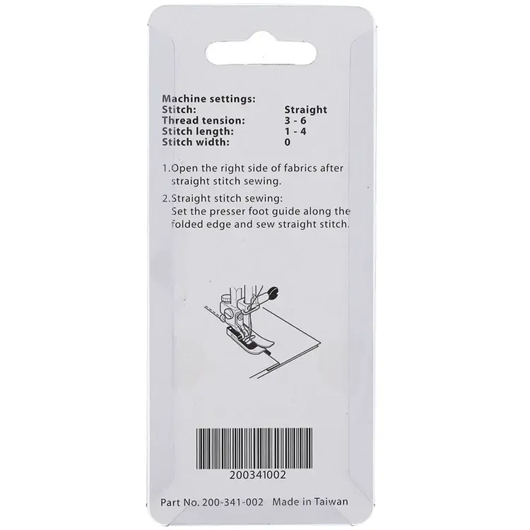 The Janome Ditch Quilting Foot (5–7mm) is perfect for stitching straight in the seam, or “ditch,” for clean, professional results. The center guide helps spread the seams for accurate placement, making it great for quilting and adding decorative topstitching along seam lines.