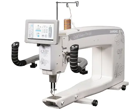 Upgrade your quilting with the Janome Quilt Maker Pro 20 longarm machine! With 2,500 stitches per inch and both cruise and precision stitch modes, it delivers speed and control. Enjoy fully adjustable handlebars for easy micro quilting, bright LED lighting around the needle, throat, and bobbin area, and a needlepoint laser for perfect placement. Customize handlebar buttons to fit your style—right- or left-handed. The Pro 20 is the perfect machine for serious quilters!