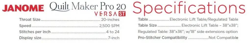 Already own the Janome Quilt Maker Pro 20 Longarm with Versa ST Table?