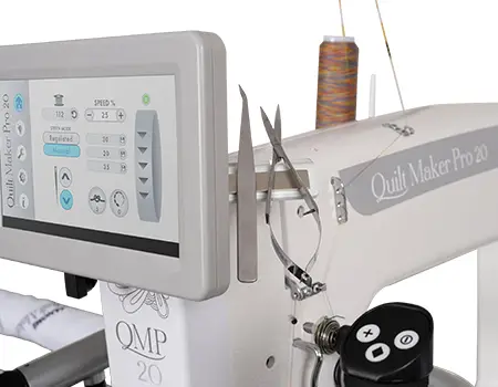 The Janome Quilt Maker Pro 20 Versa ST features an easy-to-use LCD touchscreen that gives you quick access to all functions like lighting, stitch counters, quilting timers, and software updates. You can easily set and monitor stitch control settings, plus use the on-screen handwheel to raise or lower the needle without reaching around the machine.