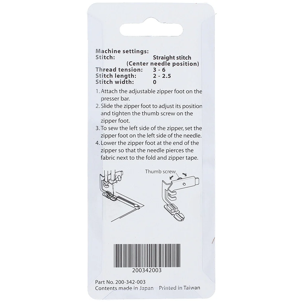 - Presser Foot Type: Zipper Foot