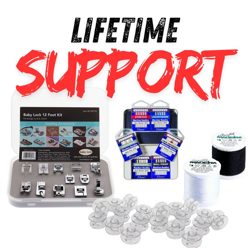 One spool of black Aerofil Madeira thread and one spool of white Aerofil Madeira thread is included, giving you two of the most useful thread colors to have on hand. It is a great starter bonus for everyday sewing, repairs, and new projects. - Free Virtual Support for Life