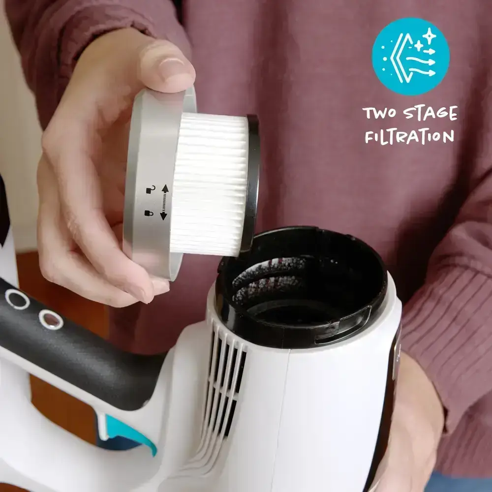 The S67 features two-stage HEPA filtration, effectively capturing dust, allergens, and fine particles, ensuring a cleaner and healthier environment in your home.